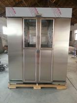 可以使吹淋气流更多地接触身体的每个部位从而更好的去除尘埃。但增大通道长度间隔,一方面占空间大,对现场请求高;另一方面造价也随之进步。进步吹淋风速、增加喷口数量,风淋室内运用的风机通常多为前倾式离心风机,其特性是小风量高静压。进步送风量,无疑就是对风机的工况提出了更高的请求,由此还带来风淋室的噪声、功耗的进步,风机体积的增大,运用寿命的降落等。